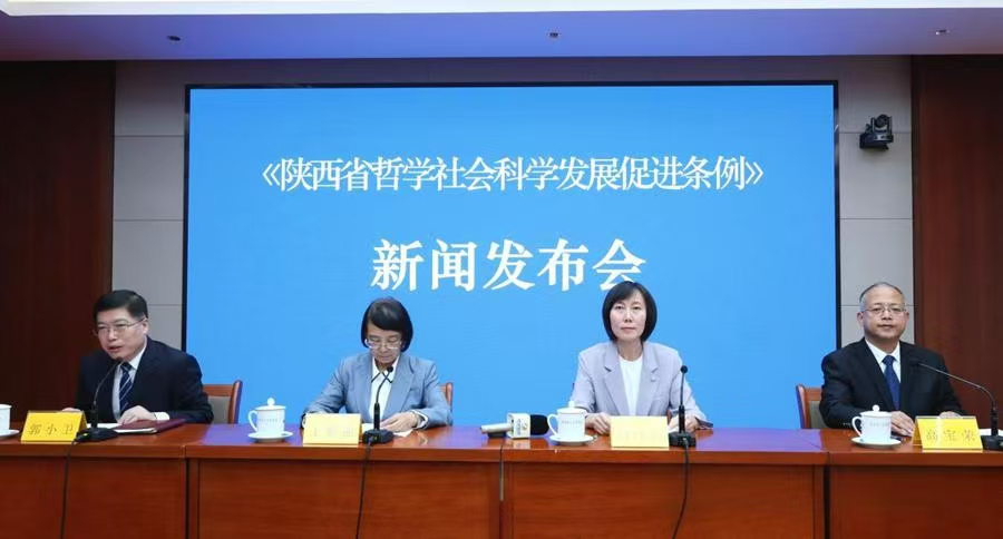9月29日,省人大常委会举行《陕西省哲学社会科学发展促进条例》(以下简称《条例》)颁布实施新闻发布会,省人大常委会法工委副主任王雅丽、省社会科学界联合会常务副主席高红霞作新闻发布,省人大常委会副秘书长郭小卫主持。