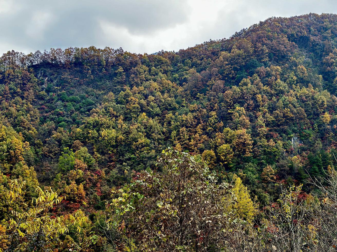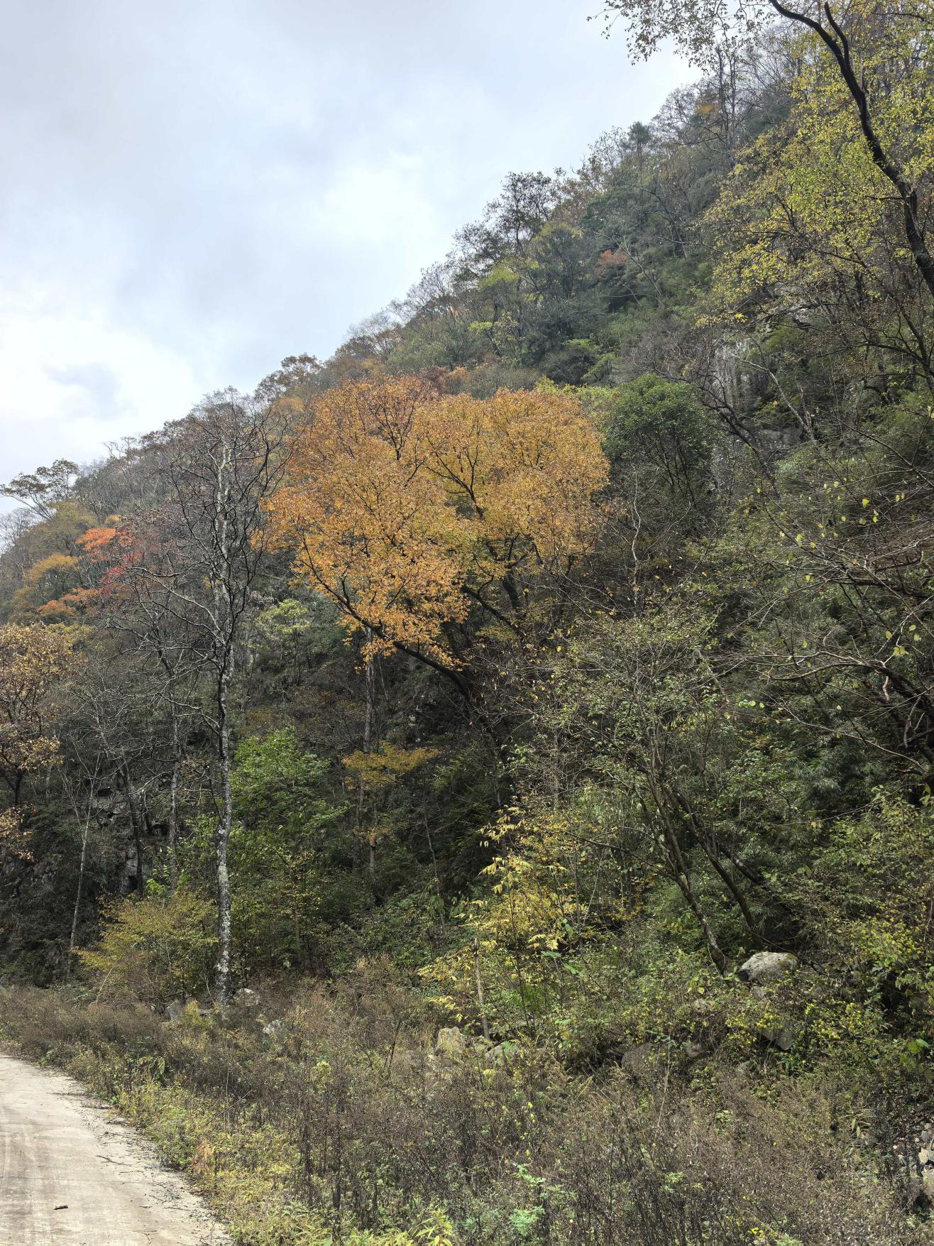 目光从天上下移,落在四周的山林上,切实“养眼”。那雨,仿佛是位耐心十足的画师,用去整整一个季节,将所有的颜色都细细地研磨、浸润、调和。你看那枫树,是酽酽的红,一团一簇,像烧得正旺的火焰;那银杏,是纯粹的金黄,在日光下亮晶晶的,仿佛每一片叶子都是一个自足的小太阳。还有些叫不出名字的灌木,深深浅浅的赭石、绛紫、橙黄,参差夹杂在苍松翠柏沉郁的绿意里。这五彩斑斓,并不杂乱,倒像是一条流动的、优雅的河川,从这边的山脊,浩浩荡荡地涌向那边的山谷。风一过,色彩荡漾,闪着光,泛着涟漪,直漾到你的心底里去。